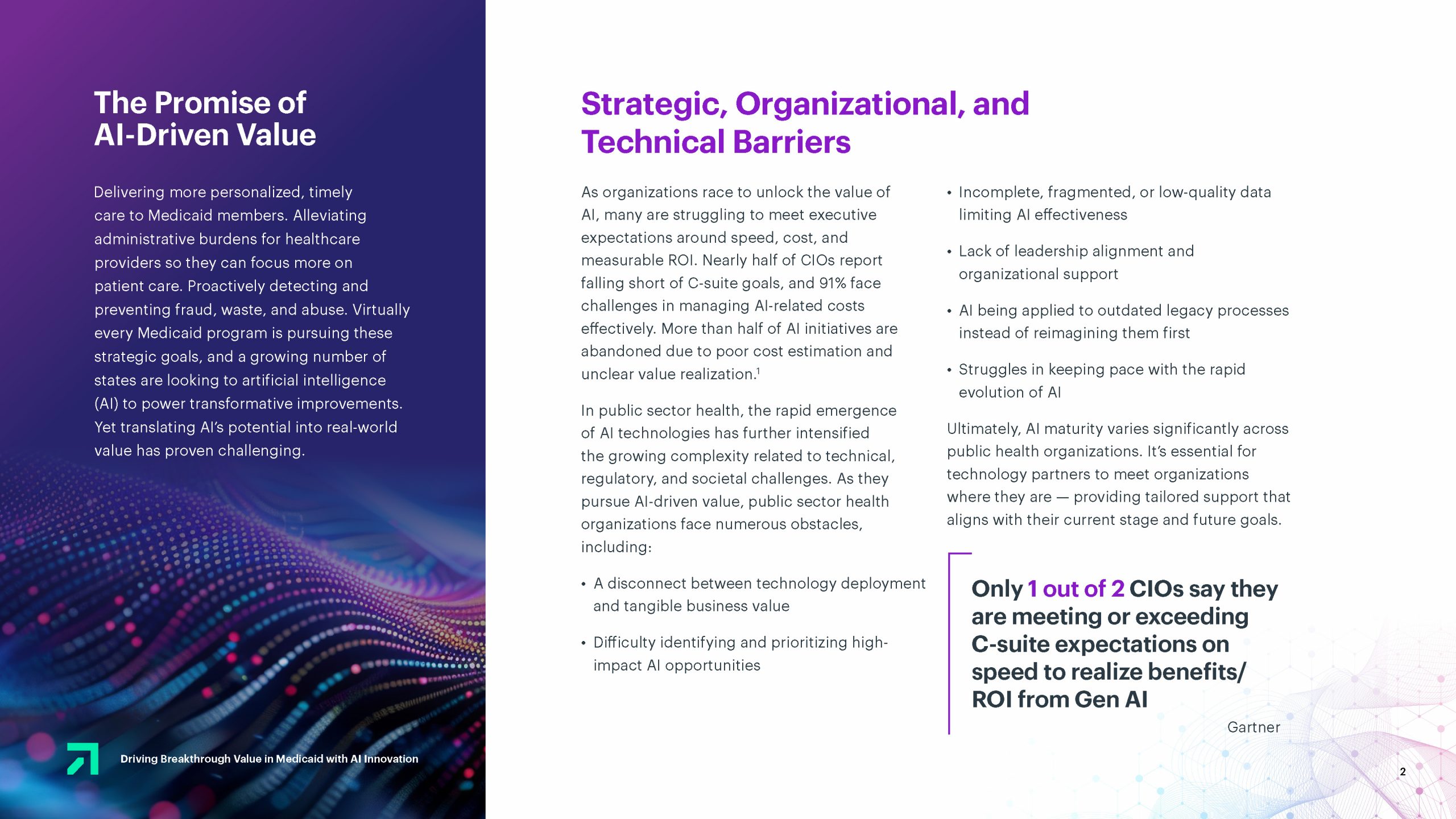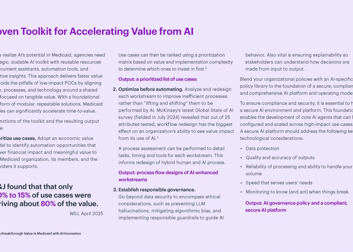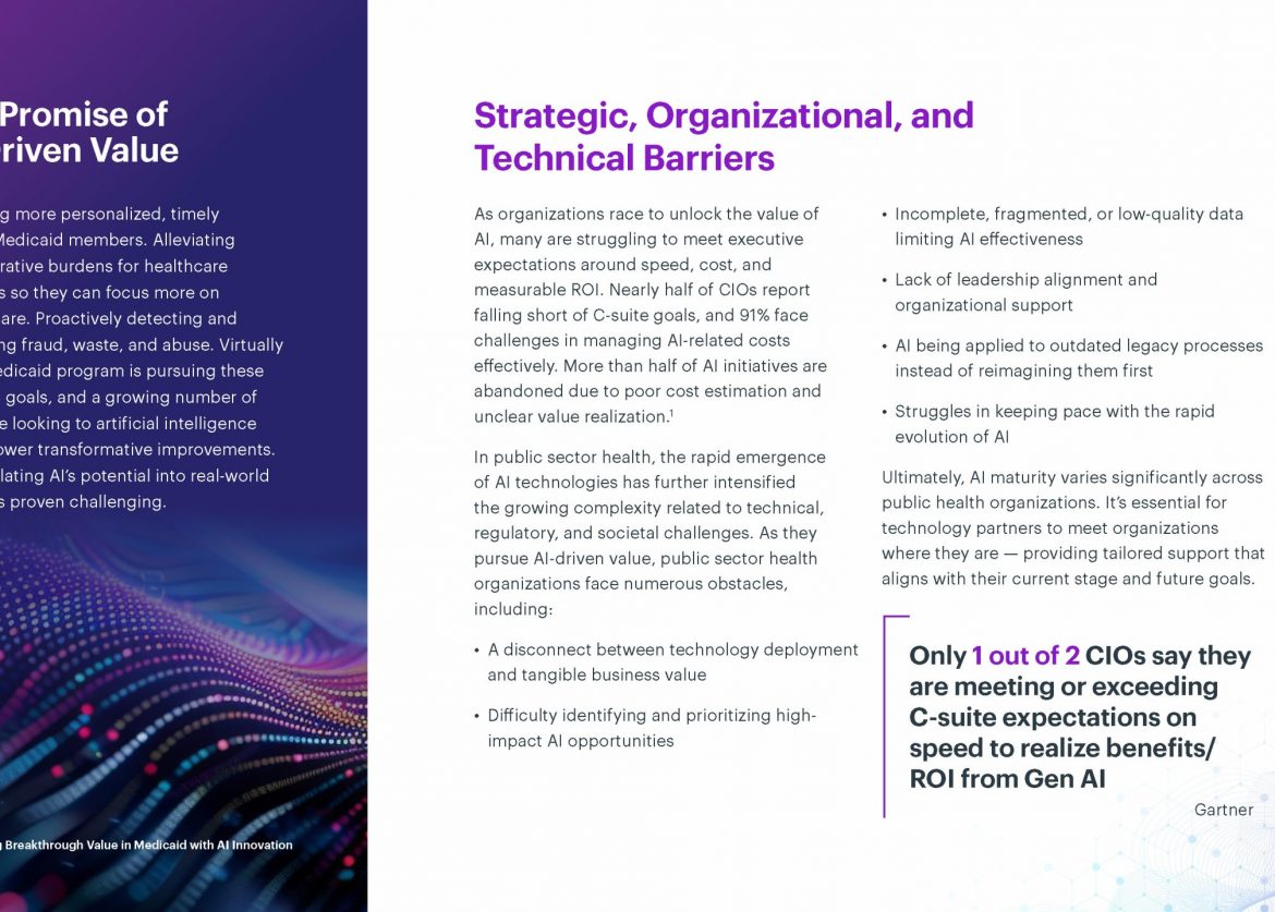 This was a white paper designed for digital distribution outlining solution for medicaid and artificial intelligence. This was created in Adobe InDesign.